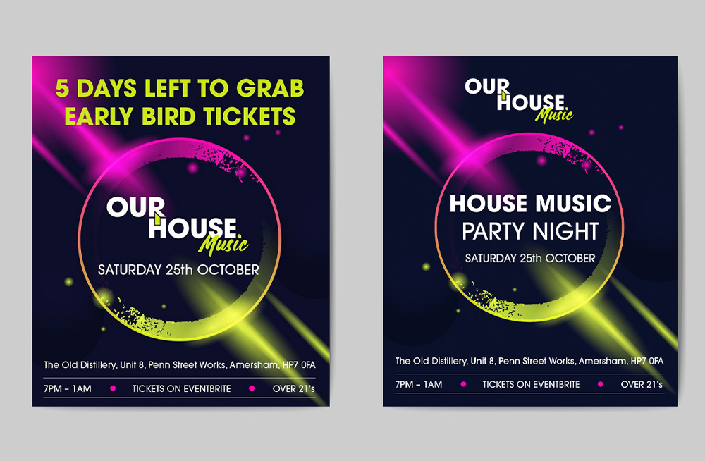 We continue to create a full suite of promotional materials for each event, including posters, social media assets, promotional videos and printed collateral. Each piece was designed for impact – instantly recognisable and adaptable across digital and physical platforms – helping the brand establish a strong presence and connect with their community of house music lovers.